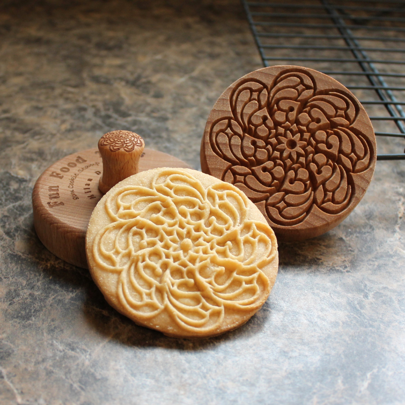 • Press the stamp firmly into the dough to create a beautifully detailed impression. The slight bevel ensures easy release.
